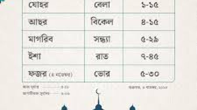 আগামীকাল ফজর শুরু - ৫টা ২৮ মিনিট।