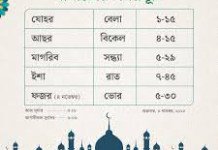 ঢাকা ও এর পার্শ্ববর্তী এলাকার নামাজের সময়সূচি নিম্নরূপ—