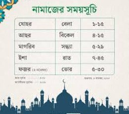 ঢাকা ও এর পার্শ্ববর্তী এলাকার নামাজের সময়সূচি নিম্নরূপ-