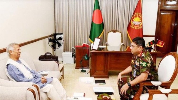 অন্তর্বর্তী সরকারের প্রধান উপদেষ্টা ড. মুহাম্মদ ইউনূসের সঙ্গে সৌজন্য সাক্ষাৎ করেছেন সেনাপ্রধান জেনারেল ওয়াকার-উজ-জামান।